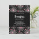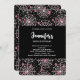 Um convite para festas de Halloween com um padrão perfeito e bonito com teias brancas e aranhas rosa.