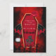 Vocês vão adorar este caixão com asas de morcegos, árvores assustadoras, e um esguicho num fundo enfumaçado vermelho e preto. Os convites correspondentes estão disponíveis.
