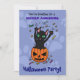 Um convite do Festa de Halloween com MuffinPuffARTS! Elliot, o personagem de desenho animado mais novo, um gato negro e rabugento preferencialmente. Aqui ele está pulando empolgadamente de uma abóbora entalhada jogando doces e doces por todo o chão. Todo o texto é personalizável. Ilustrações de Jojo Kneebone - Aka MuffinPuffART!