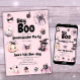 Ei Boo, Convite de aniversário de Halloween Apresenta gráficos bonitos de abóboras cor-de-rosa e pêssego, aranha de gatos, fantasma fofo.