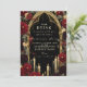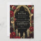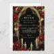 Entra numa noite de mistério com este design de Halloween gótico, com um arco de ouro, velas brilhantes e flores vermelhas profundas. Perfeito por receber uma elegante e assombrosa celebração do Dia das Bruxas de na moda que deixa uma impressão duradoura.