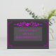 Este convite de festas decorativo será perfeito para a sua festa de Halloween! Esta placa apresenta um crânio cor-de-rosa com asas de morcego com uma estrutura decorativa cor-de-rosa na frente, o fundo é uma cinza escura para a frente e o verso do convite. O texto é totalmente personalizável para que você possa adicionar os detalhes para o seu partido! Agora o vamos se prepara para ter a melhor festa do ano!