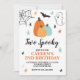 Dois Spooky! Convite de aniversário de Halloween. Vamos fica assustado! Besta de aniversário convidada com abóboras e estrelas e aranhas turquesas.