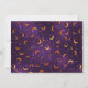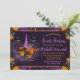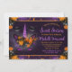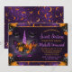 Belo design com cor laranja, roxo e preto no Halloween Floral Unicorn com roxo escuro e fundo de luas de boque.