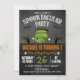 Concurso de aniversário do Chalkboard Halloween Frankenstein - Convite bonito para um convite de aniversário de outubro com uma linda cabeça de Frankenstein, árvores assustadoras, morcegos e bolas oculares. Claro que é bom para a festa de aniversário temática do Dia das Bruxas de um menino.