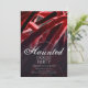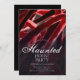 Um convite de festas de casa assombrado que estabelece o clima para um evento divertido e assustador de Halloween. O convite é preto, vermelho e branco, com pistas angustiantes no fundo. Adicione seus detalhes, adicione este convite ao seu carrinho e convide seus convidados para uma festa incrivelmente memorável. Design de Natal de Halloween Hauneen Convite de festas de Halloween | ©Melissa Patton/Illustrator