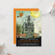 Um convite de festas de fantasia de casa assombrado do Dia das Bruxas de uma criança spooktacular, cheio de uma casa assombrada, bruxa voando sobre uma vassoura, fantasma, e abóboras em laranja, preto e azul.