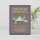 Este convite para a festa de Halloween inclui acessórios de bruxas como um sapo, feitiços e feitiços.
