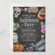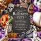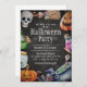 Boo!! Enjoy this spooky, chalkboard Halloween birthday invitation! It's the perfect way to invite guests to your Halloween party. This Halloween invite is designed with many watercolor graphics including skulls, pumpkins, potions, a witch hat and more with chalkboard background and Halloween text.