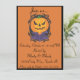 O homem laranja e preto de jack-o-lanterno convida para o Halloween.