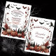 Uma espetacular abóbora do Halloween Carving convite de festas com jack ou lanternas. A design apresenta abóboras, morcegos, corvos e folhagem de queda em cores de outono. O lado inverso tem um design correspondente. O texto é facilmente personalizável.