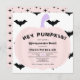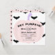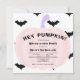Ei, Pumpkin! Prepare-se para uma festa de aniversário Spooktacular com este belo convite de aniversário de Halloween. Apresenta um fundo repleto de morcegos e uma abóbora rosa-rosa-rosa-moderna. É perfeito celebrar sua garotinha com as cores rosa pastel e roxo.