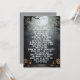 Uma lua de cheio em uma floresta assombrada com Jack o'lanterns cria um convite para festa de Halloween bonito e divertido.