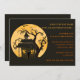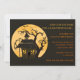 Convite do Festa de Halloween Assustador com uma casa assombrada, morcegos e árvores assustadoras contra uma lua pálida.