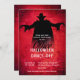 Um convite para festas de Halloween, uma empresa elegante e divertida, com um tema de dança monstruosa, com uma silhueta monstruosa Dracula em um fundo vermelho escuro. Elegante, moderno, simples e elegante, para a melhor dança monstro da festa que o seu escritório já viu.