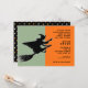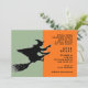 A festa aberta do Halloween convida com uma silhueta de bruxas voadora e uma linha divertida.