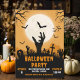 Join us for a Halloween night out, Enter the spooky gates of the haunted graveyard where the undead rise for a night of ghoulish fun. Get ready for thrilling scares, spooky cocktails and wicked costumes. Don't miss out on this frightfully fun event - the spirits are waiting for you! The image would show a misty graveyard at night, with tombstones, twisted trees and shadowy undead figures emerging from the ground. The moonlight casts an eerie glow, while bats fly overhead, creating the perfect spooky atmosphere.