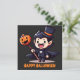 Ce design captivant présente un personnage charmant déguisé en vampire pour Halloween, avec des dents pointues, une cape noire et un haut-de-forme élégant. Tenant fièrement une citrouille souriante sur un bâton, ce vampire exprime la joie et l’esprit festif d’Halloween. Le texte “Happy Halloween” en bas ajoute une touche de célébration à ce design coloré et amusant, parfait pour partager l’excitation de cette fête effrayante. Avec ses couleurs vives et son style ludique, ce design est idéal pour les enfants et les jeunes de cœur, capturant l’innocence et la magie de l’Halloween.