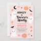 Halloween Pink Halloween Fouever Spooky Aniversário Convocação para o Dia das Bruxas de Garota Doce o quarto convite de aniversário para uma garota com alguns fantasmas, abóboras, morcegos, cogumelos e folhagem. Este convite de aniversário para o Dia das Bruxas é ideal para o aniversário de uma menina de outubro.