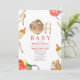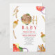 Tema de chá de fraldas de borboletas e garrafas com Ilustração de hambúrguer e batatas fritas, biberões, alface, tomate, cebolas e queijo.