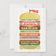 Hambúrguer Empilhado Único com cebolas, picles, alface, cachorro quente, queijo, mostarda, ketchup, sobre fundo branco de madeira. Um padrão piquenique vermelho de gingham está na parte de trás do convite. Seu convidado vai adorar este convite único. Personalize com seu próprio texto. Por favor, procure na minha loja mais assim. Ilustração original por pj_design. Envie-me um e-mail se precisar de ajuda.