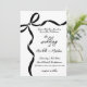 A hand-drawn bow sits in the top left corner, with flowing ribbon details extending across the top and down the left side of the card for a delicate, refined accent. The wedding text is placed in the bottom right, creating a balanced layout with plenty of open space and a calm, sophisticated feel.