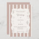 A hand drawn style wedding invitation with beach, coastal theme. A soft ivory and taupe striped colored background, with an ivory frame and taupe colored elements. Personalize and add your names and the details.