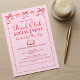 Chic coquette pink book club invitation with red bow doodles and elegant typography. Perfect for reading clubs, literary gatherings, and cozy girl book nights. This stylish design blends charm and sophistication for book lovers who adore classic feminine flair. Message the designer for more customization options.