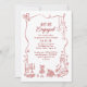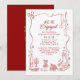 This playful engagement party invitation is bursting with personality, charm, and a whole lot of love! Designed in a fun hand-drawn doodle style, it’s the perfect way to kick off your “we’re engaged!” celebration with style and a smile. Adorned with quirky burgundy red illustrations — from string lights and musical notes to champagne flutes, seafood plates, cupcakes, and bubbly glasses — every detail says “let’s party!” A wavy border playfully wraps around your party info, creating a relaxed, informal vibe that’s ideal for garden parties, backyard brunches, or casual get-togethers with your favorite people.