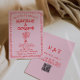Convites Hand Drawn Pink Red Retro QR Code Wedding