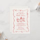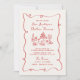 The invitation is beautifully adorned with a red hand-drawn squiggle frame, adding a whimsical and artistic touch that effortlessly captures attention. At the heart of the design lies a charming hand-drawn illustration of a wedding tablescape, complete with an array of food and drinks. This detailed artwork evokes the warmth and joy of a celebratory feast, inviting your guests to partake in the festivities.