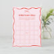 Convites Hand Drawn Red Pink Bow Bridal Shower Bingo Game