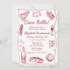 Convites Hand Drawn Retro Red Italian Casual Bridal Brunch
