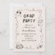 A whimsical graduation party invitation. Featuring a hand-drawn, quirky graduation cap, diploma, stack of books, champagne glasses, doodled frame, and handwritten text. The text "GRAD PARTY" is not editable, but all of the other text is editable. You can also change the colours. If you need a different heading or other changes, please feel free to contact me.