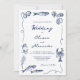 Convites Hand Drawn Whimsical Coastal Navy Blue Wedding