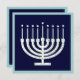 Um menorah lunático nos círculos do azul e do verde faz um convite de acolhimento a sua celebração de Hanukkah.