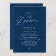 Mark the beginning of your forever with elegance using our contemporary navy blue theme wedding elopement Reception celebration invitation card, "Happily Ever After Dinner". Perfect for couples extending their joyous occasion, this invitation exudes sophistication with a hint of playfulness, setting the stage for a memorable event. Adorned with a timeless modern script design theme, it adds a touch of refined charm to your festivities. Crafted by TeeshaDerrick, this invitation promises to beautifully capture your love story.