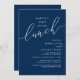 Mark the beginning of your forever with elegance using our romantic contemporary navy blue theme, wedding elopement celebration invitation card, "Happily Ever After Lunch". Perfect for couples extending their joyous occasion, this invitation exudes sophistication with a hint of playfulness, setting the stage for a memorable event. Adorned with a timeless modern script design theme, it adds a touch of refined charm to your festivities. Crafted by TeeshaDerrick, this invitation promises to beautifully capture your love story.