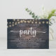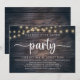 Mark the beginning of your forever with elegance using our rustic string light cottage wood theme wedding elopement celebration invitation card, "Happily Ever After Party". Perfect for couples extending their joyous occasion, this invitation exudes sophistication with a hint of playfulness, setting the stage for a memorable event. Adorned with a timeless modern script design theme, it adds a touch of refined charm to your festivities. Crafted by TeeshaDerrick, this invitation promises to beautifully capture your love story.