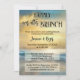 After wedding brunch invitation featuring an original fine art painting of a sunset at a stormy beach. The back shows a dreamy colored striped design.