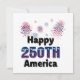 Invite your guests to a historic celebration. This bold America 250 party invitation features clean typography, a patriotic stars-and-stripes 250th, and festive fireworks. Perfect for July 4th 2026 BBQs, family reunions, block parties, and community events.