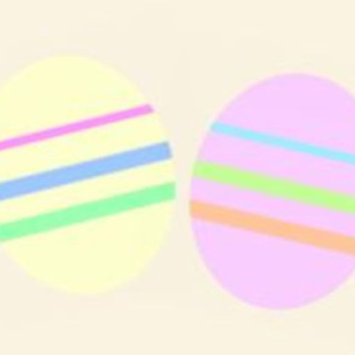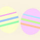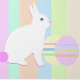 Pretty, simple, and modern design with a cute Easter Bunny sitting beside 2 pink and yellow Easter Eggs on a pastel striped background. Text is customizable.