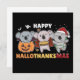 Feliz Hallothanksmas - Feliz Halloween, Ação de Graças e Natal. O coala está vestido como um morcego no Halloween. Com uma torta para o Dia de Ação de Graças, decorada com bonés de Papai noel no Natal.
