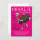 Convites noturnos, com uma avestruz envergonhada, com um boogie cheio de chapéu de festa e soprador. A festa não começa até que a avestruz da festa chegue. Dedicado à família de avestruzes atualmente em fuga na Escócia; pense nisso como uma impressão artística de como eles estão se sentindo. LIBERDADE! Altere os detalhes para se adequar ao seu evento.