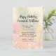 Havaiano temido, modelo de convite de aniversário personalizado. A fonte de script em negrito no topo deseja à garota de aniversário um feliz aniversário, com informações de festa fáceis de personalizar em forma de parágrafo. Um cheio de fundo de achados tropicais típicos inclui abacaxi, hibisco e flores de plumeria em lindas cores rosa-mudo, amarela e verde. A forma do colchete é fácil de mudar, e o reverso segura outra cena dos trópicos com palmeiras e vista oceânica.