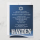 Estrela de aço de David e design de onda azul com o nome "Hayden". Entre em contato com este designer para obter um convite personalizado de Nome em sua cor favorita. Excelente para o Bar Mitzvahs, Bat Mitzvahs, Graduações e Aniversários. Nome do bloco negrito sobre uma onda de cor.