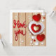 Corações e mensagem que te amo em fundo de madeira. Arte digital