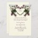 Espíritos gentis de Heather e flores brancas delicadas formam uma forma cardíaca contendo noiva e iniciais "gravadas" de noivo sobre um fundo branco macio. Este convite especial tem todos os elementos que trazem um senso de romance antiquado para um design contemporâneo. A parte de trás apresenta a famosa frase de Robert Burns "Ó minha Luva é como a melodia que é doce de tocar em sintonia." Com um texto totalmente personalizável, este convite também se tornará um guardião precioso