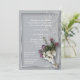 Suaves espertalidades de Heather colocadas sobre um fundo de prata com delicada cobertura de renda são os elementos que trazem um senso de romance antiquado para este convite de casamento contemporâneo. A parte de trás apresenta linhas do famoso poema de amor Robert Burns, Thou Fair Eliza. Com um texto totalmente personalizável, este convite também se tornará uma preciosa manutenção do seu dia especial.