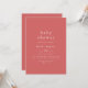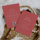 Este ruidoso convite de chá de fraldas de QR ruivo, vermelho, da Coleção Heidi é perfeito para um simples chá de fraldas. O design vermelho de morango apresenta uma tipografia moderna, não adorada, com um estilo minimalista único. Personalize as costas com um anúncio de gênero, livros para bebê, rifa de fralda, código QR de registro e/ou quaisquer outros detalhes adicionais que possam ser úteis para os seus convidados.